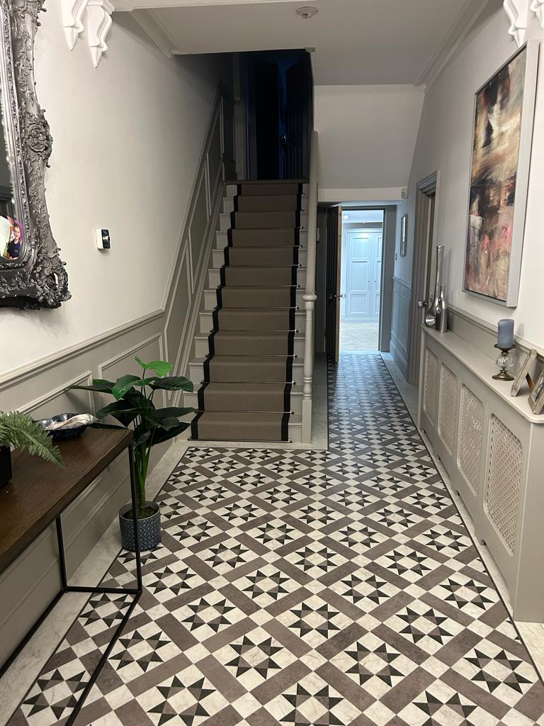 In summary, the combination of Amtico Flooring Classic Argent DC294, Fibre Flooring Twill Carpet in Shingle, and StairrodsUK Jubilee Stair Rods in Pewter promises to elevate your hall with timeless sophistication and luxurious style. Trust us to create a welcoming and visually stunning entrance to your home.