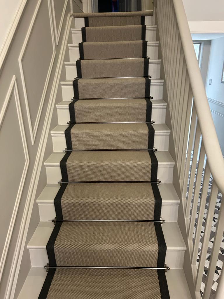 Experience a stunning transformation in your hall with Amtico Flooring Classic paired with a Fibre Flooring Twill Carpet runner. Complete the look with StairrodsUK Jubilee Stair Rods for added elegance and style.