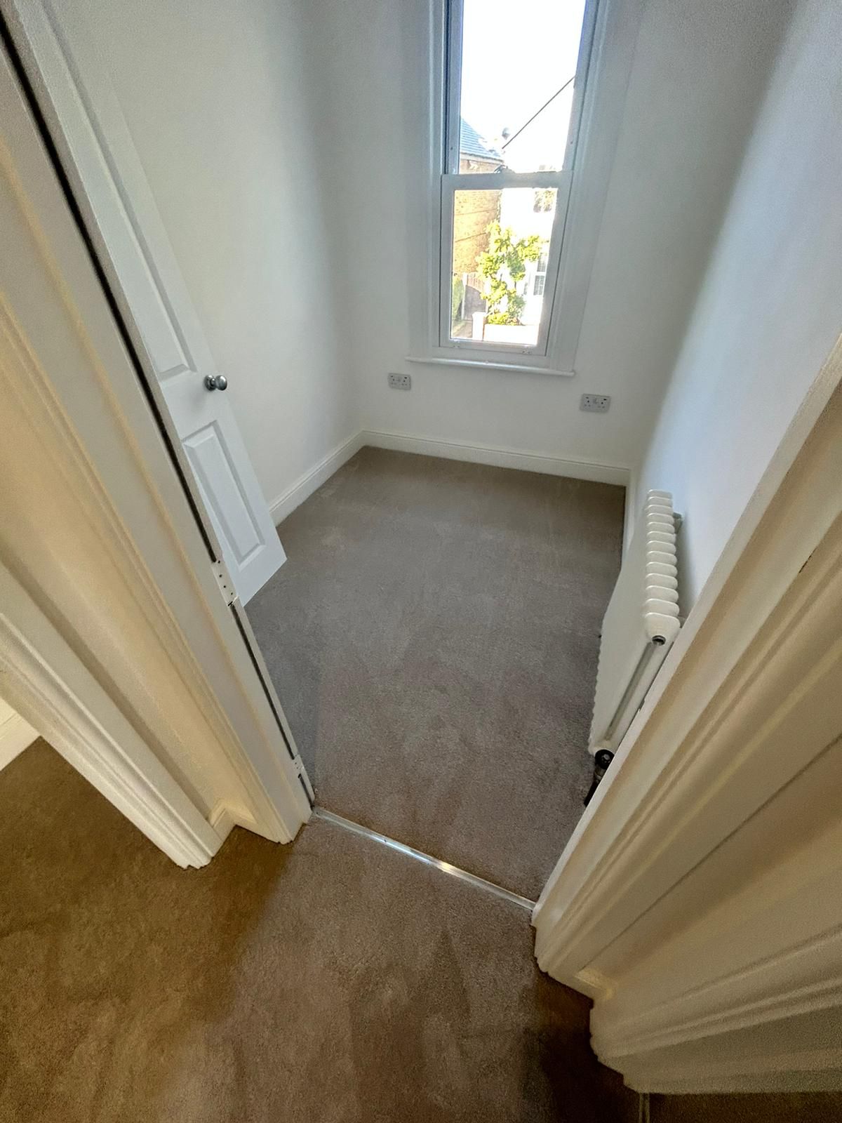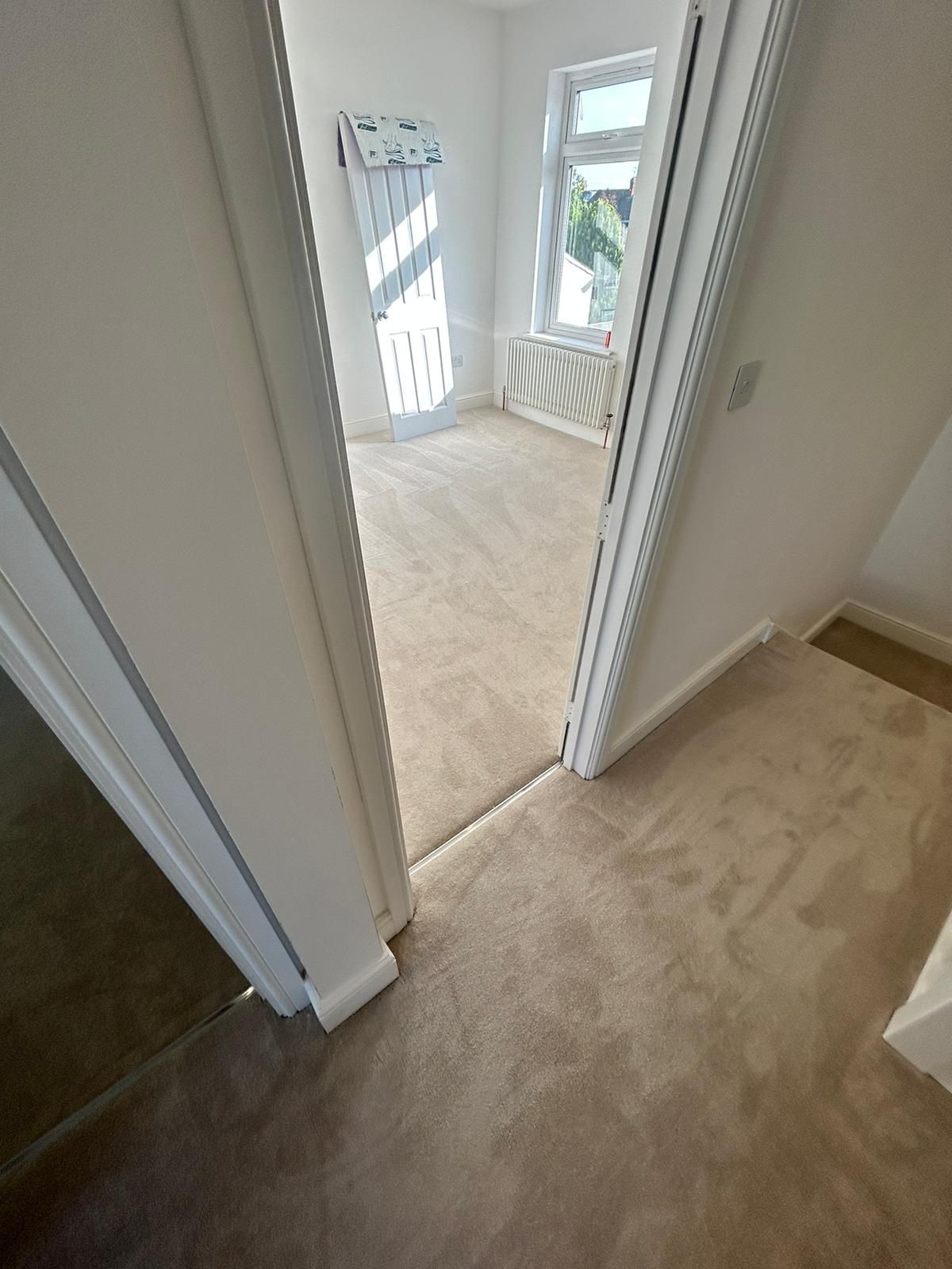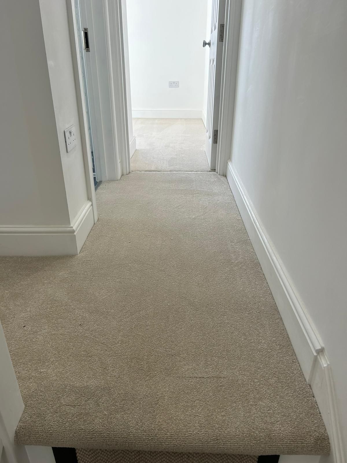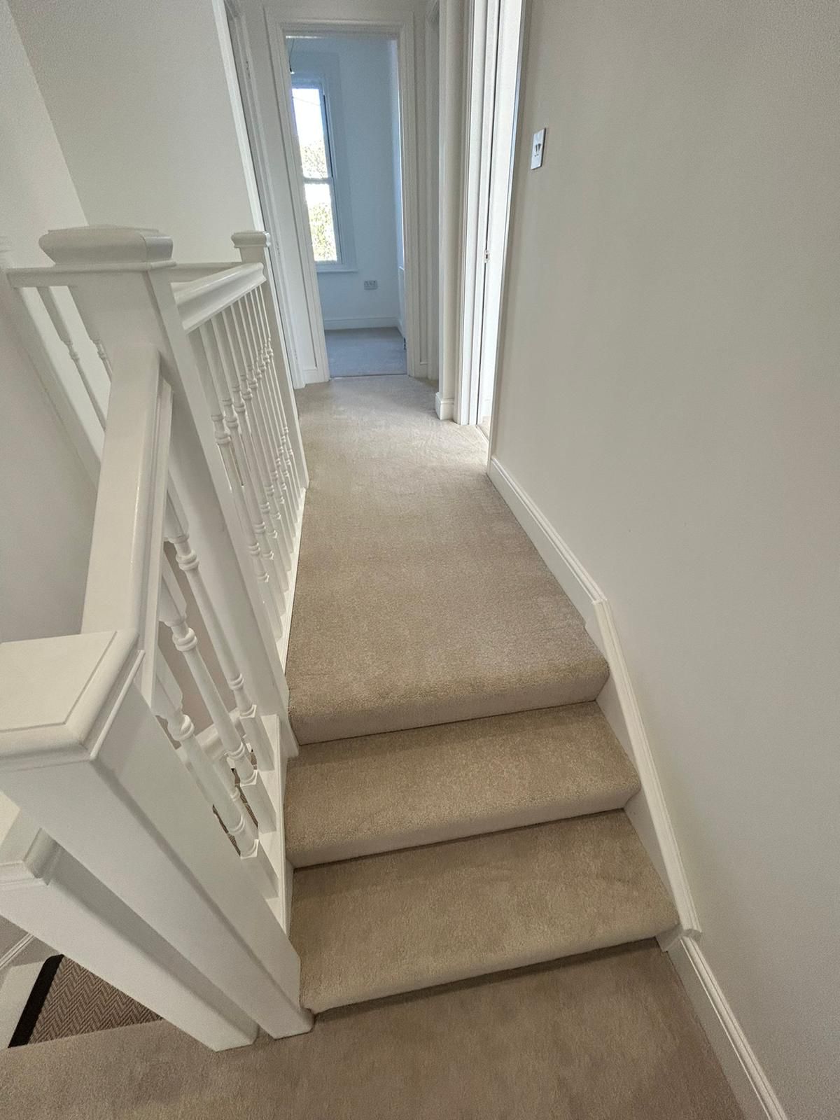 In summary, our installation in Teddington showcases the timeless beauty of Fibre Flooring Classic Herringbone in Chalk, enhanced by a black tape stair runner and high-density underlay. Trust us to elevate your home with flooring that combines style, comfort, and longevity, creating a space you’ll love for years to come.