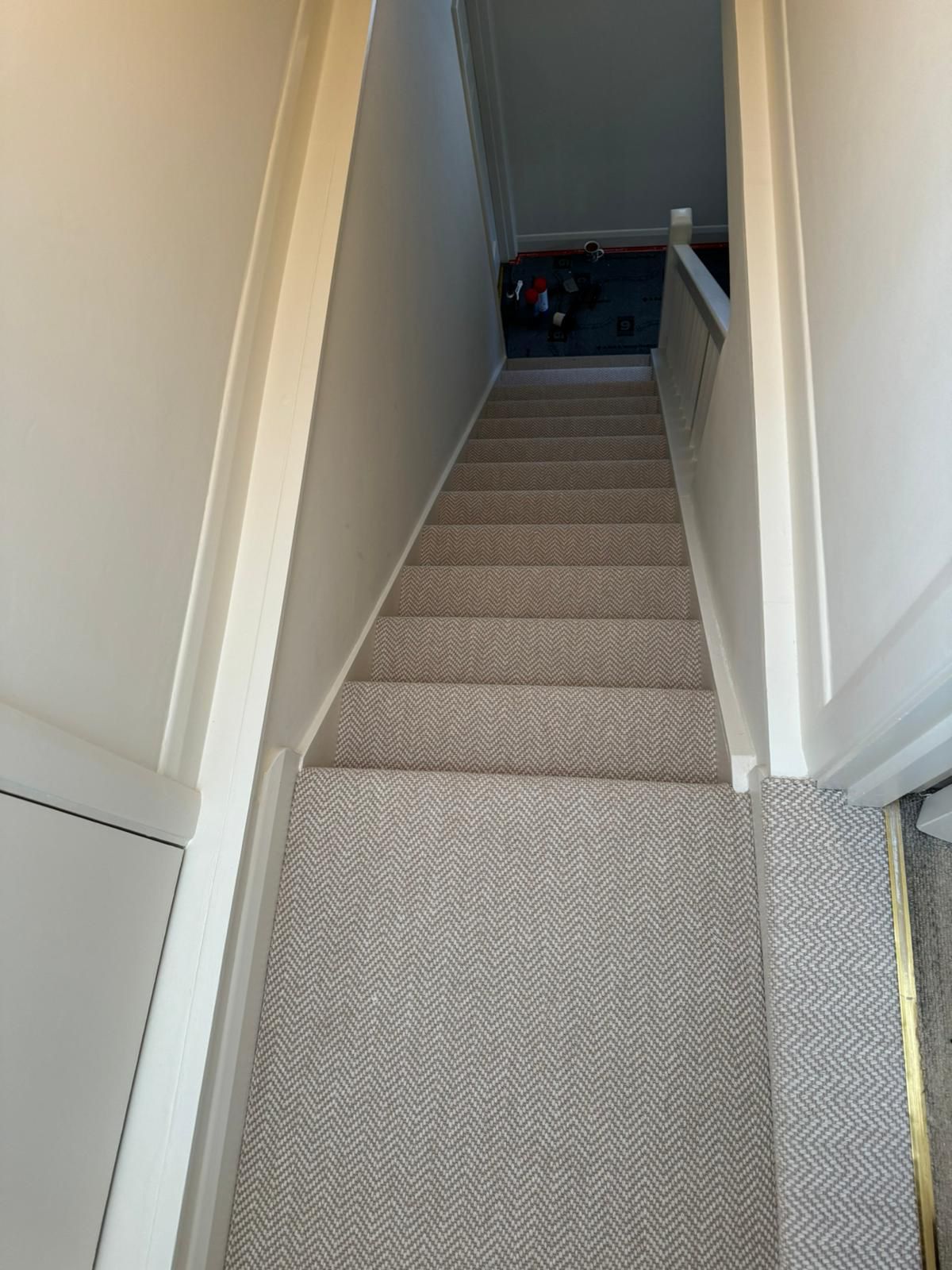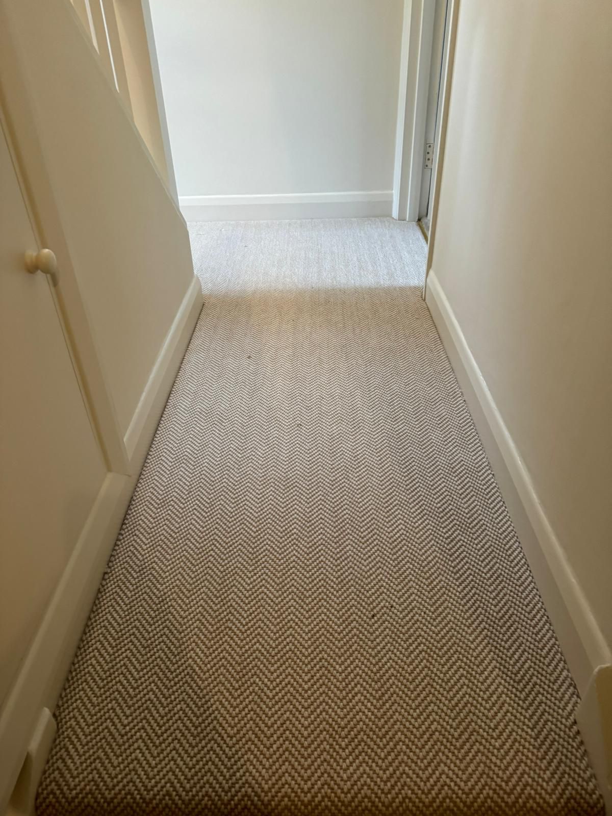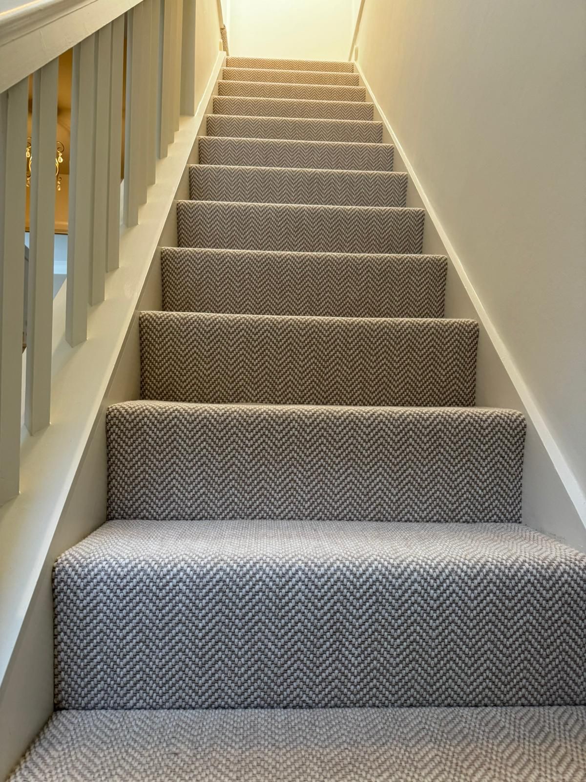 Our expert team will install the carpet using a high-quality contract underlay and short pin gripper, ensuring a flawless and long-lasting fit. The herringbone pattern adds a touch of elegance and visual interest, while the Chalk colour provides a versatile and contemporary look that complements any interior décor.