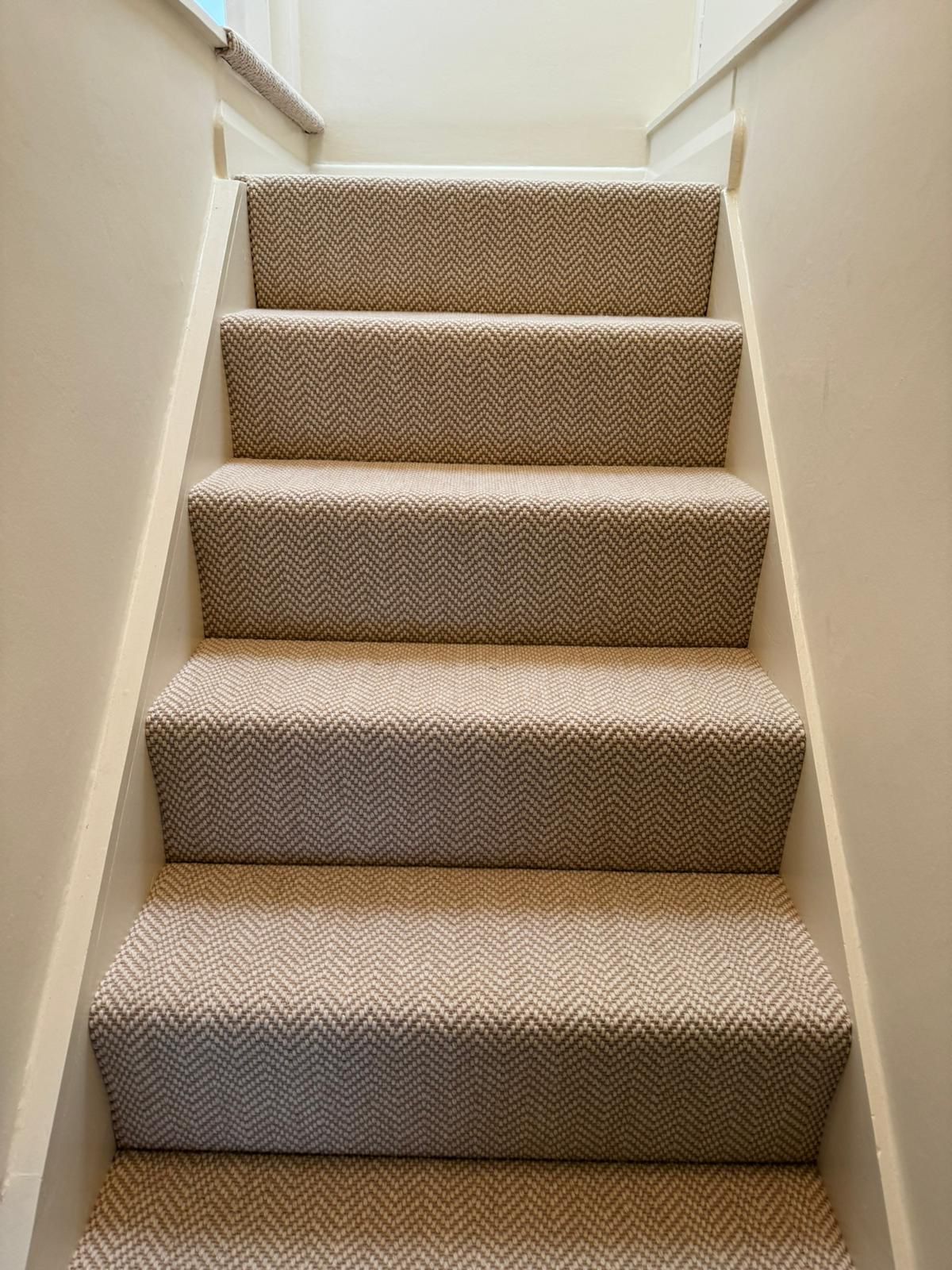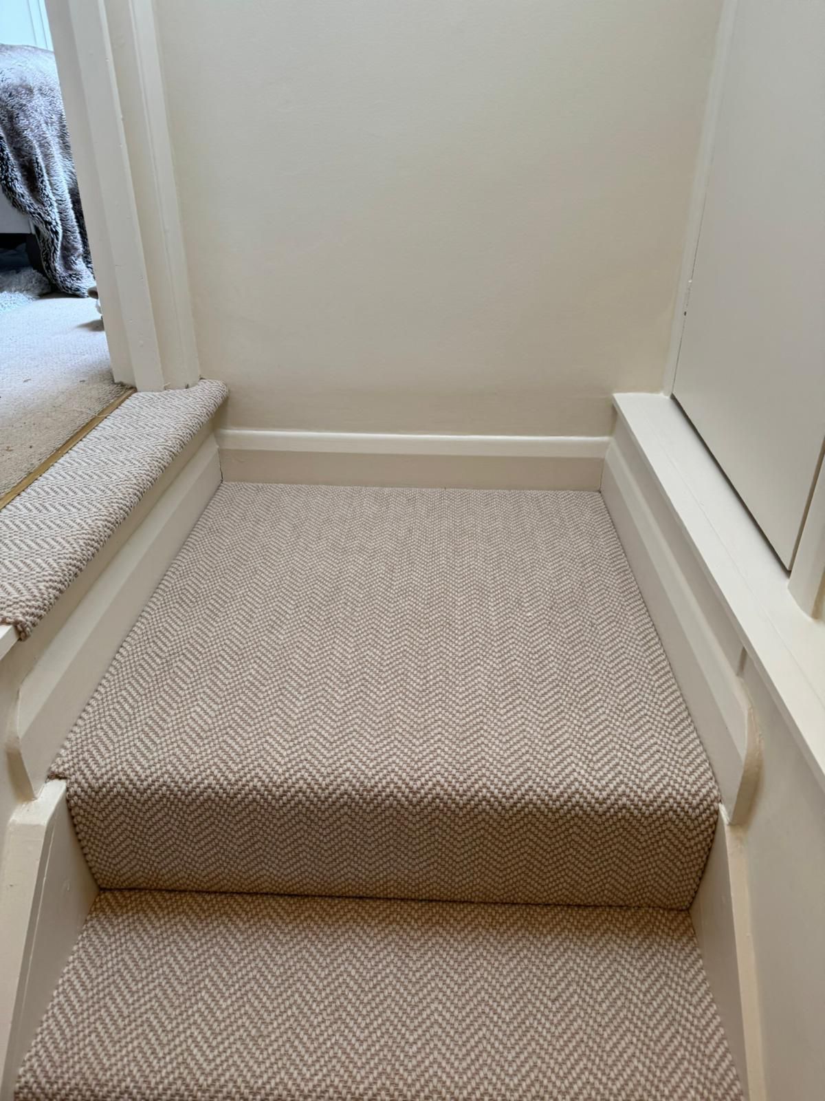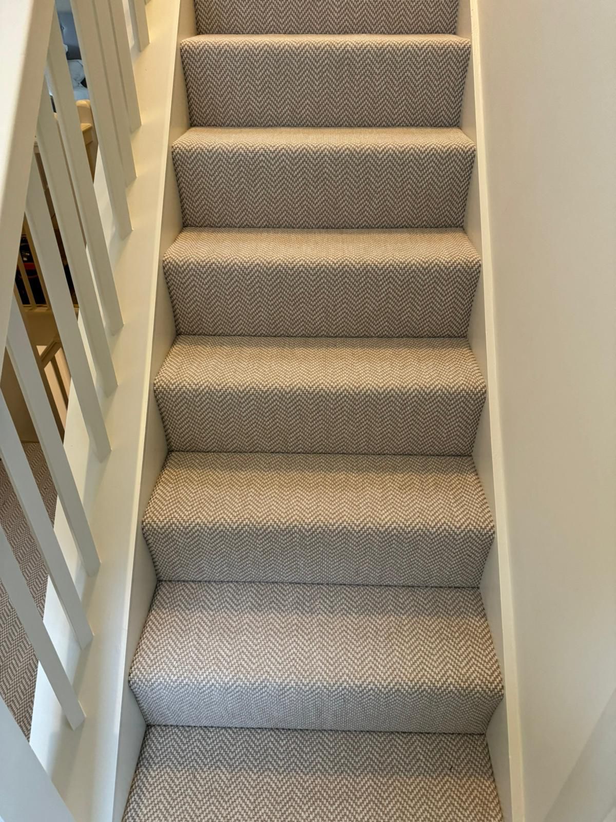 Our expert team will install the carpet using a high-quality contract underlay and short pin gripper, ensuring a flawless and long-lasting fit. The herringbone pattern adds a touch of elegance and visual interest, while the Chalk colour provides a versatile and contemporary look that complements any interior décor.